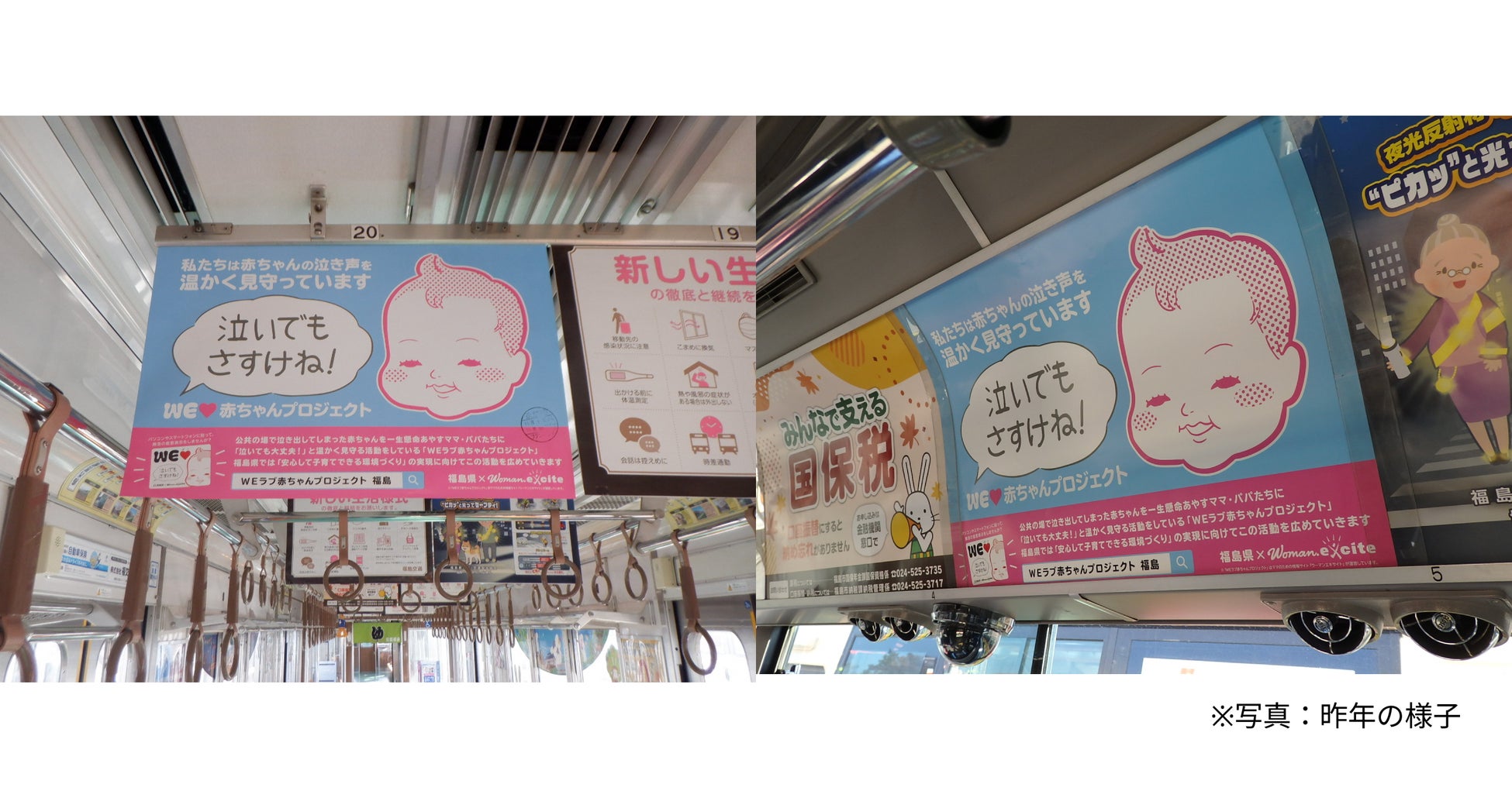 「泣いでもさすけね!」が溢れるまちへ。「WEラブ赤ちゃんプロジェクト×福島県」が、県内の公共交通機関で啓発キャンペーンを開始