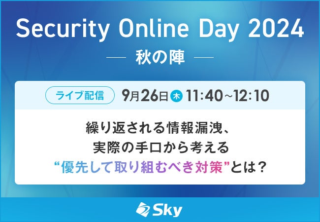 Sky株式会社は、9月25日(水)~26日(木)にオンラインで開催される「Security Online Day 2024 秋の陣」(主催:株式会社翔泳社 EnterpriseZine編集部)に協賛いたします。