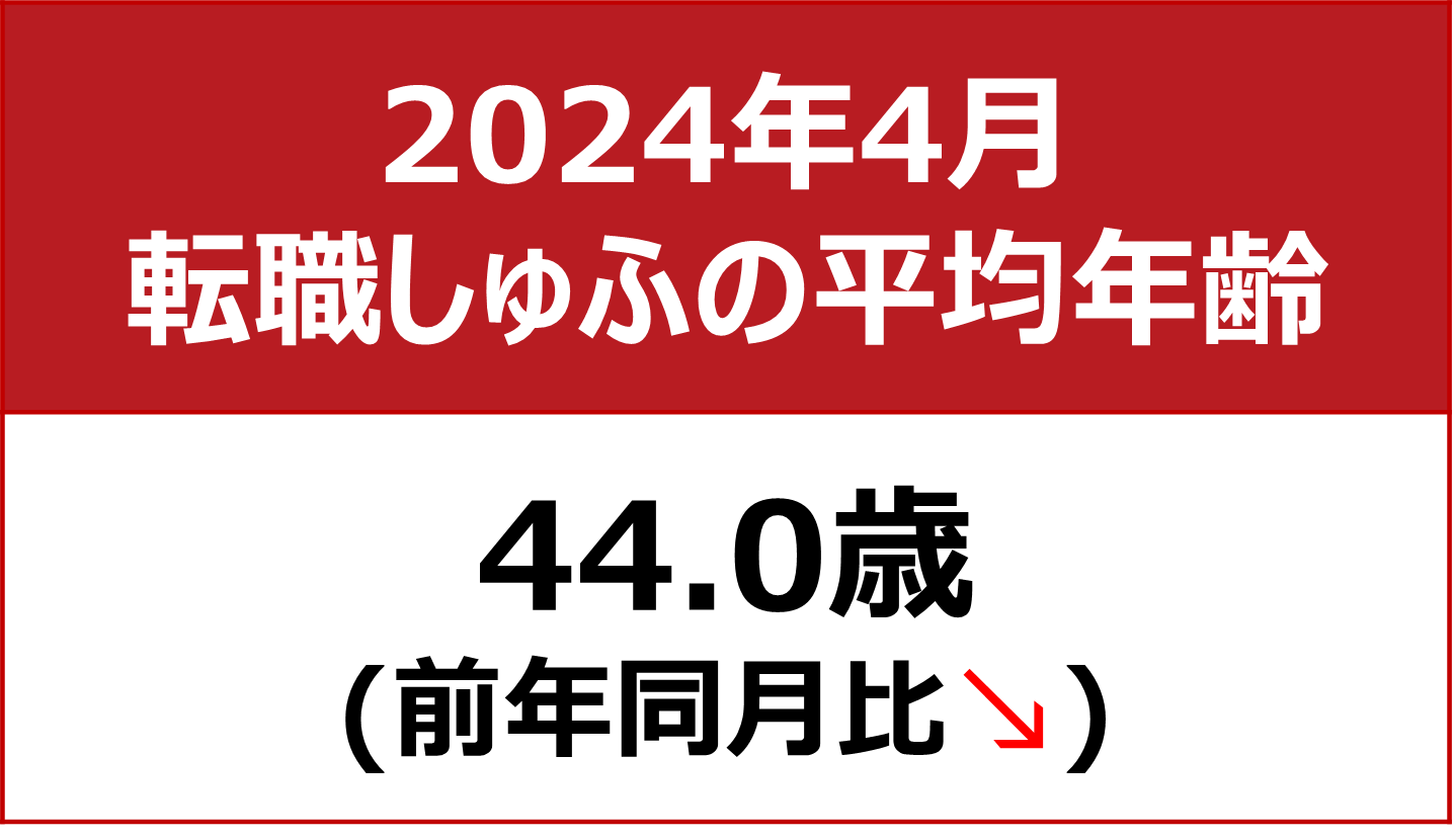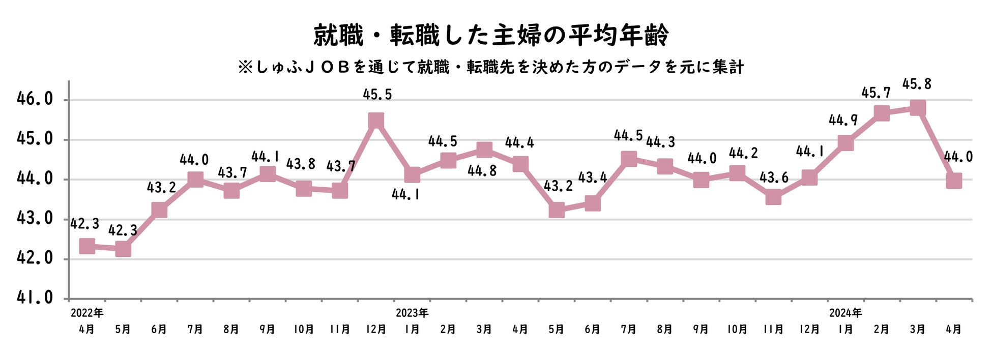 【転職しゅふの平均年齢調査 2024年4月】44.0歳(前年同月比-0.4歳)