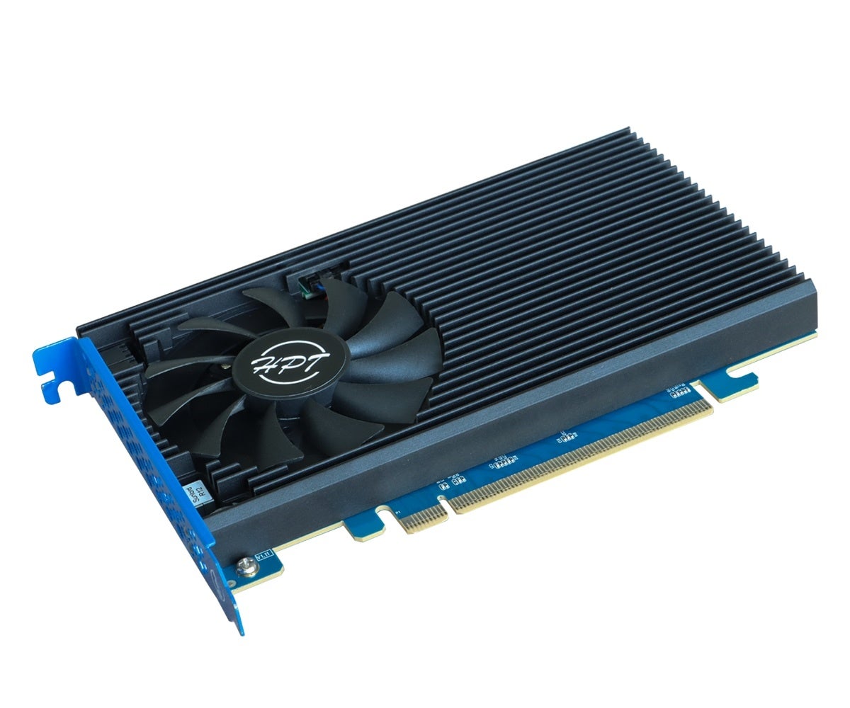 1枚のボードに最大4基のM.2 SSDを増設可能。PCI Express 5.0に対応し、高速なストレージ環境を構築できます。ボードを覆うヒートシンクとファンにより、安定した動作が可能です。