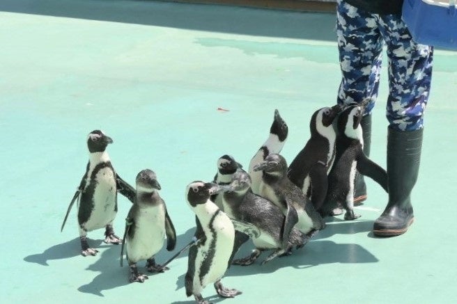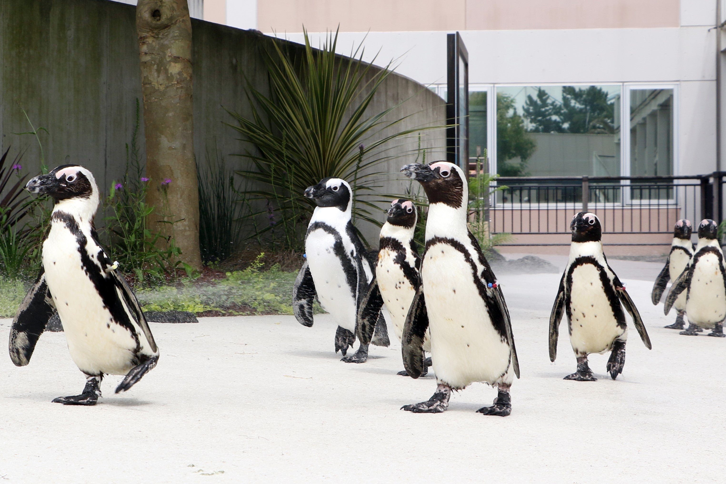 水族館「ふれあいラグーン」では、ぺたぺたよちよちと歩く姿が可愛らしいケープペンギンたちが、皆さまの前をパレードいたします。