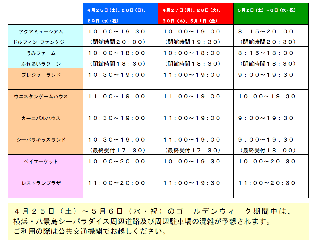 時 間 : ■4月25日(土)~5月1日(金)、9日(土)~24日(日)の土休日