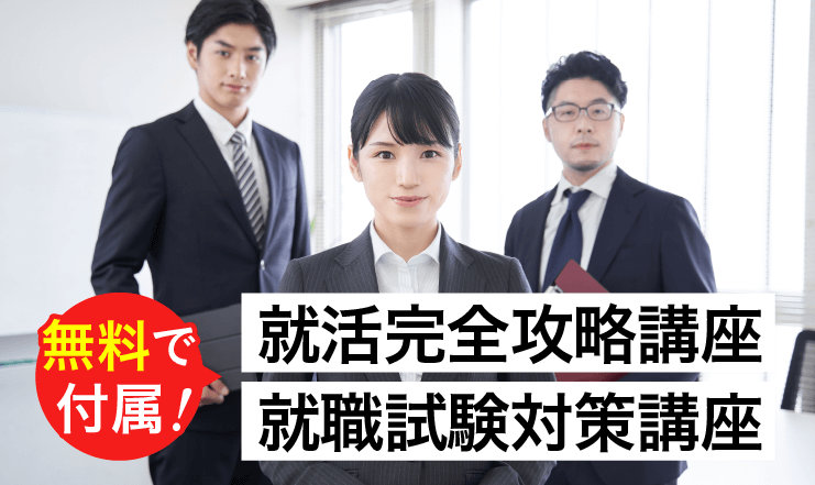 本カリキュラムをご受講の方には、就活で必要とされる全ての要素を詰め込んだ就活完全攻略講座と、SPI3などの採用テストを対策する就職試験対策講座が無料で付属します。