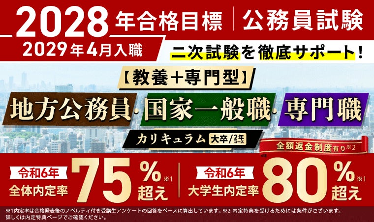 公務員試験【2028年合格目標】【教養+専門型】地方公務員・国家一般職・専門職カリキュラム(フル・ライト)(大卒/2年コース)リリース!