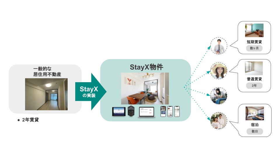 例えば、StayXの導入により、賃貸マンションや空き家、遊休資産の別荘を宿泊施設として無人で運営でき、不動産の運用方法が広がるため、空室リスクを減らすことにも繋がります。