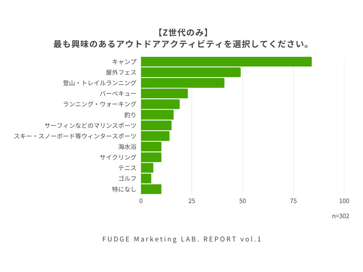 では、Z世代は具体的にどのようなアウトドアアクティビティに興味をもっているのでしょうか。