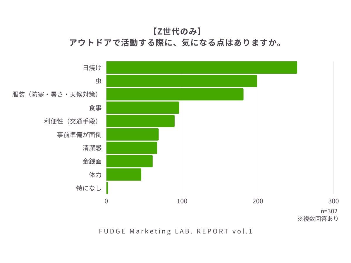 4.Z世代がアウトドア活動の際に気にするのは「日焼け」「虫」「服装」