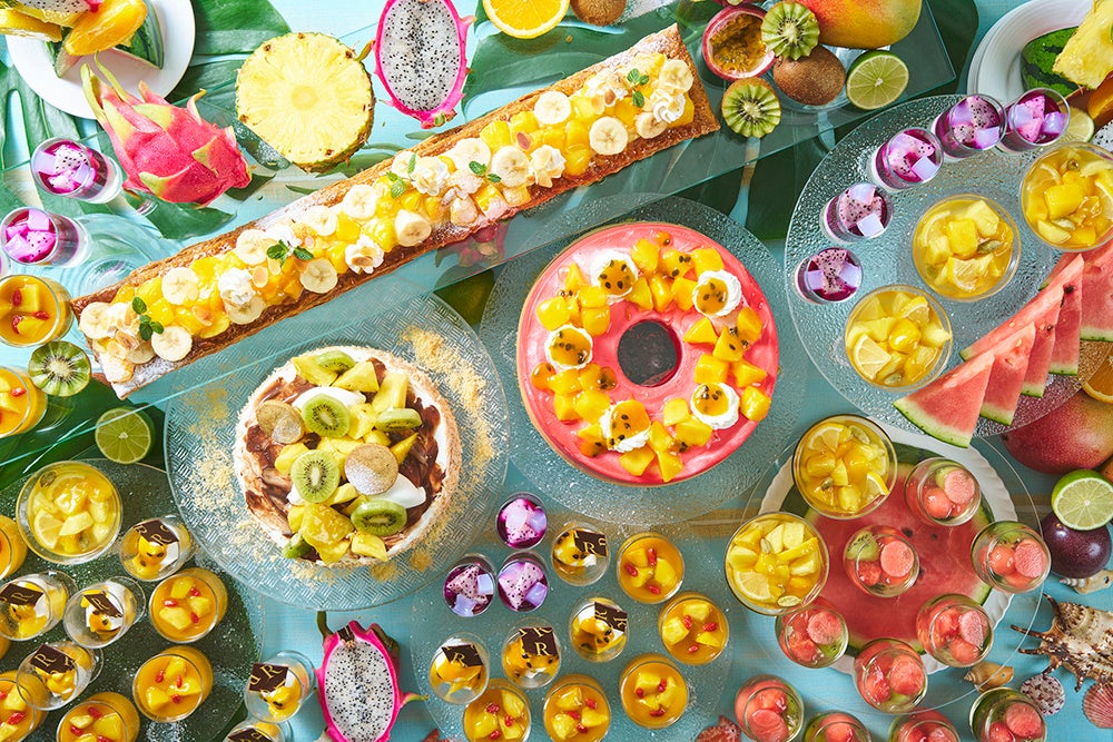 東シナ海を望む空間でフレンチの数々を楽しむ、週末のランチビュッフェ。4~6月はパッションフルーツとパイナップルを使ったムースやタルト、ロールケーキなどのスイーツもご賞味いただけます。