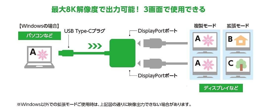 ※1:DisplayPort(TM)端子からUSB Type-C(USB-C)端子に変換することはできません。
