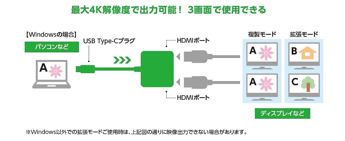 ※1:いずれのタイプもHDMI端子からUSB Type-C(USB-C)端子に変換することはできません。