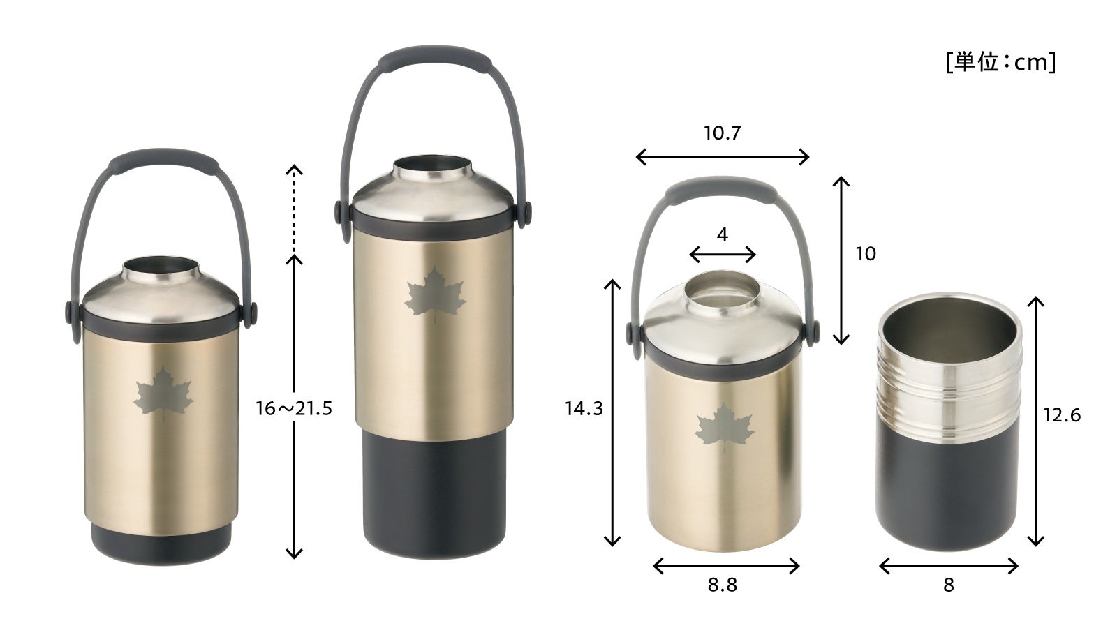 全体真空断熱構造により、ペットボトルやボトル缶飲料を保温・保冷できるボトルホルダー『真空「温・冷」ペットボトルシリンダー』を、様々なアウトドアシーンや普段使いにぜひともご活用ください。