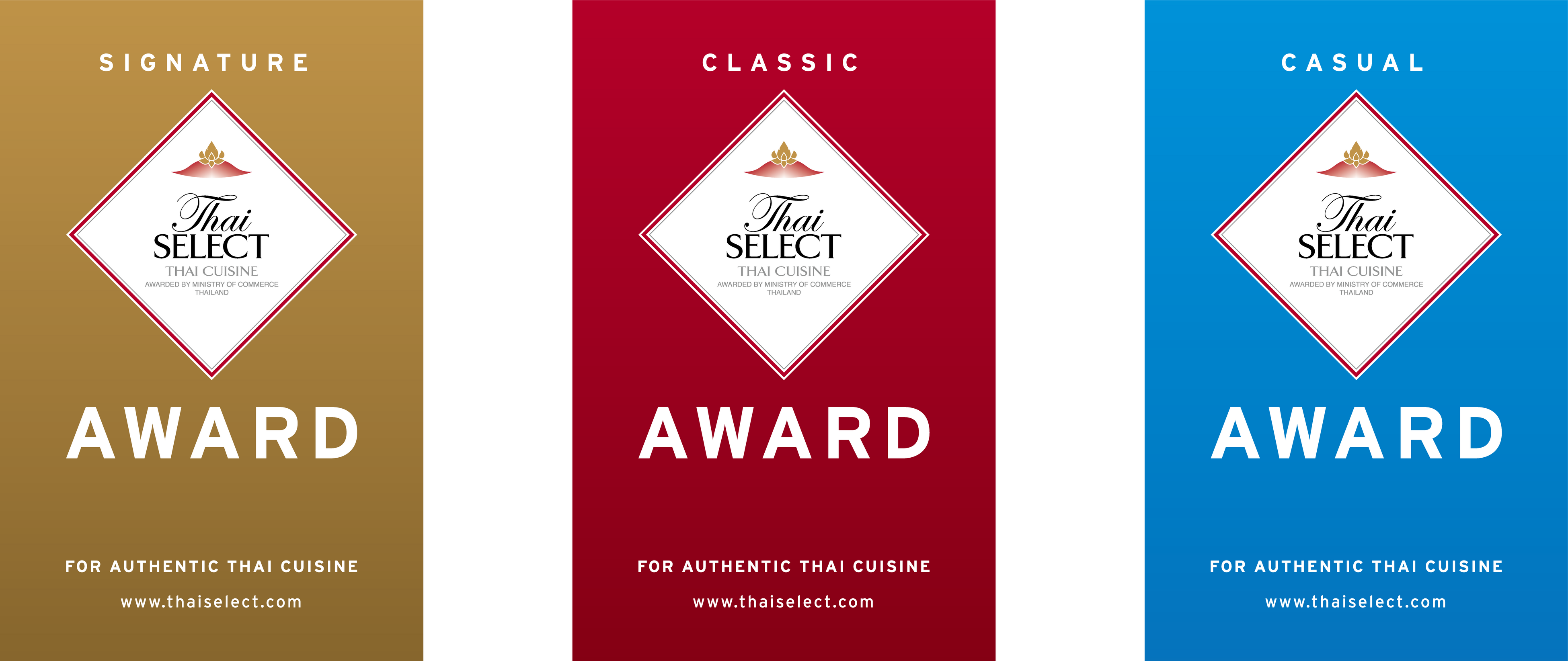 タイ国商務省国際貿易振興局(DITP)がタイ料理の認知度・信頼度向上のために、日本にありながら本場のタイ料理を味わえるレストランに対して与える基準認定マークで、1998年に制度がスタート、タイ料理のシェフとして訓練と経験を積んでいること、タイ香り米やタイの調味料を用い本場の味付けを再現していることや、タイらしい雰囲気と上質なサービスでお客様をもてなしていることが求められます。