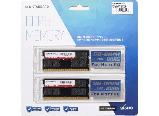 CFD Standard W5N5600CSシリーズ DDR5-5600 ノート用 メモリ 2枚組