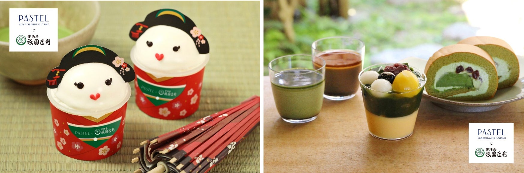 そしてこのたび、新緑の季節に合わせて、「パステル」と宇治茶専門店「祇園辻利」のコラボレーションが実現、「祇園辻利」の豊かな香りとまったりとした旨味・甘味が特徴の「宇治抹茶」、焙煎による高い香りと味わいが楽しめる「ほうじ茶」を使用した新商品『濃いプリン 舞妓さん』『祇園辻利の宇治抹茶使用 宇治抹茶プリンロール』『祇園辻利の宇治抹茶使用 宇治抹茶あんみつプリン』『祇園辻利の宇治抹茶使用 濃いプリン なめらか宇治抹茶』『祇園辻利のほうじ茶使用 濃いプリン なめらかほうじ茶』の5品を共同開発し、期間限定で販売いたします。