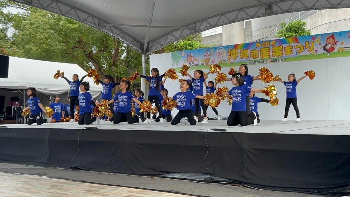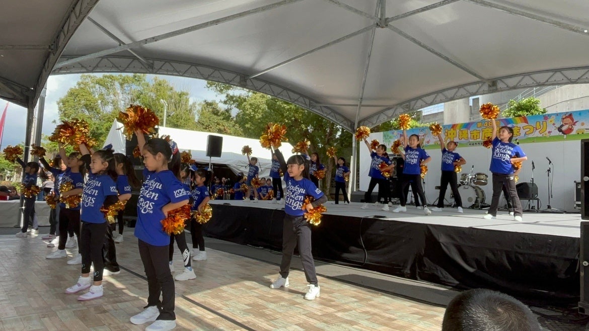 沖縄市産業まつりへの出演はキングスダンススクール創立以来初となり、ホームゲームだけではなく地域のお祭りやイベントへの出演は、スクール生にとって有意義な時間となりました。