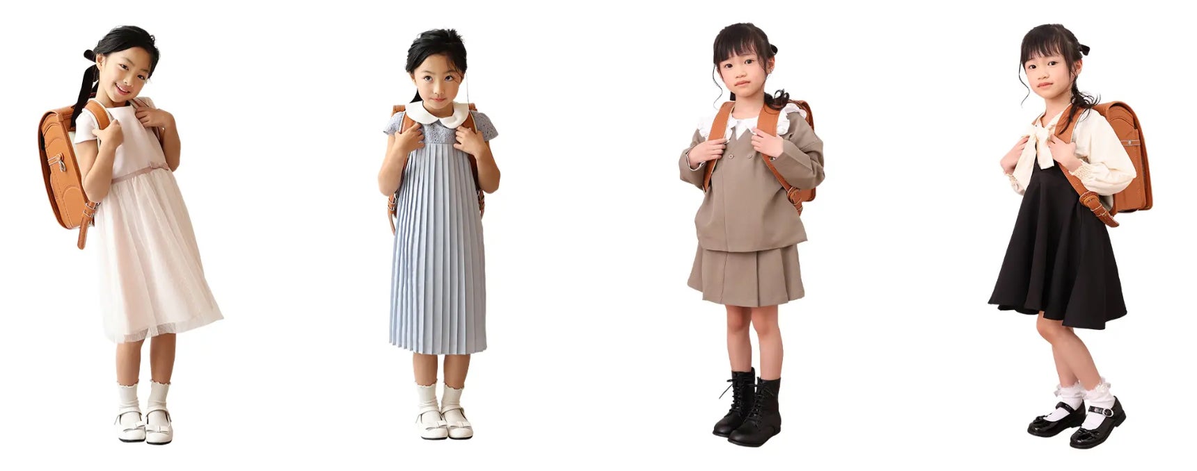 入学衣装も、スーツスタイルからドレッシーなものまで幅広くご用意。