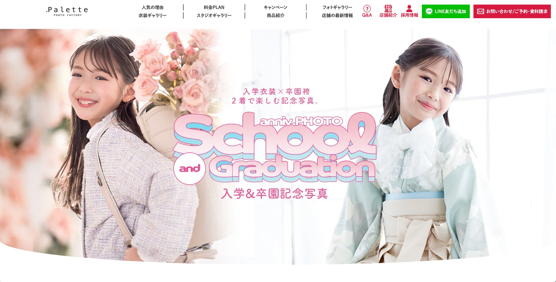 北海道の札幌を中心に全道に店舗展開している写真工房ぱれっと(本社/有限会社三景スタジオ)の入学写真ページがリニューアル!TOPフォトでは入学衣装と卒園袴のビジュアルを組み合わせたものを使用。