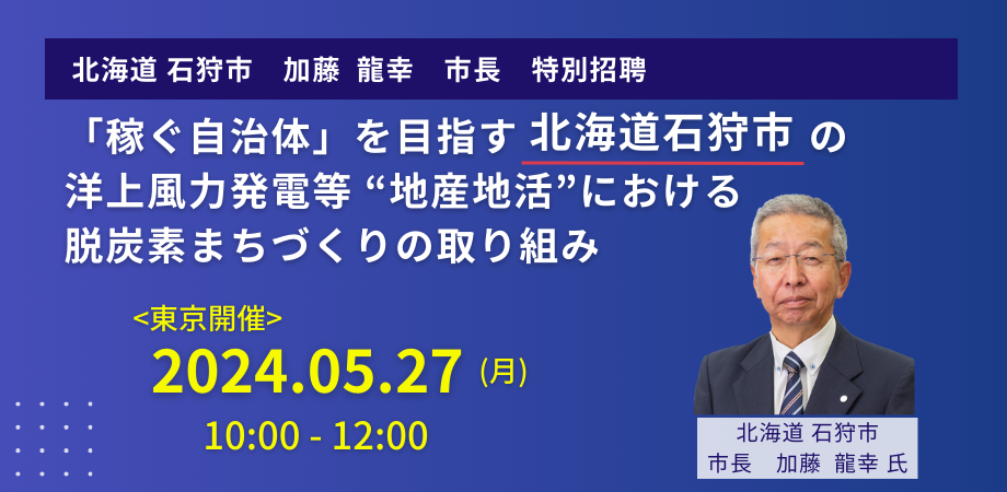 【JPIセミナー】「”稼ぐ自治体”を目指す北海道石狩市の洋上風力発電等“地産地活”における脱炭素まちづくりの取り組み」5月27日(月)<東京開催>