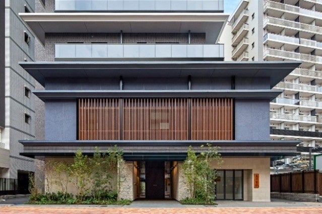 京都有数の名所である世界遺産二条城に近接し、主要な幹線道路である堀川通に面する集合住宅。外部からの高い視認性と、周辺環境がもたらす優れた眺望の魅力を活かすために、バルコニーを用いない新たな外観デザインの構築と、居住空間への眺望の最大限の取り込みを目指すと同時に、現代的な外観に伝統的な手法を取り入れました。