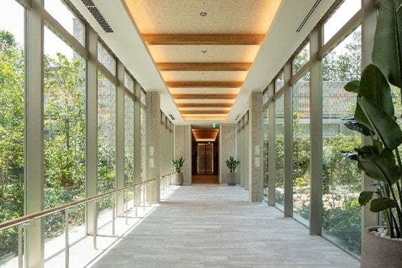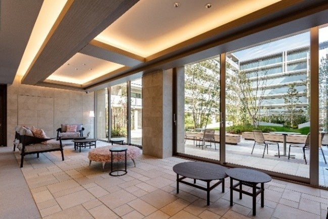 季節の移ろいを感じるエントランスと、風が通り抜け中庭と一体利用可能な自然を感じるガーデンラウンジ。
