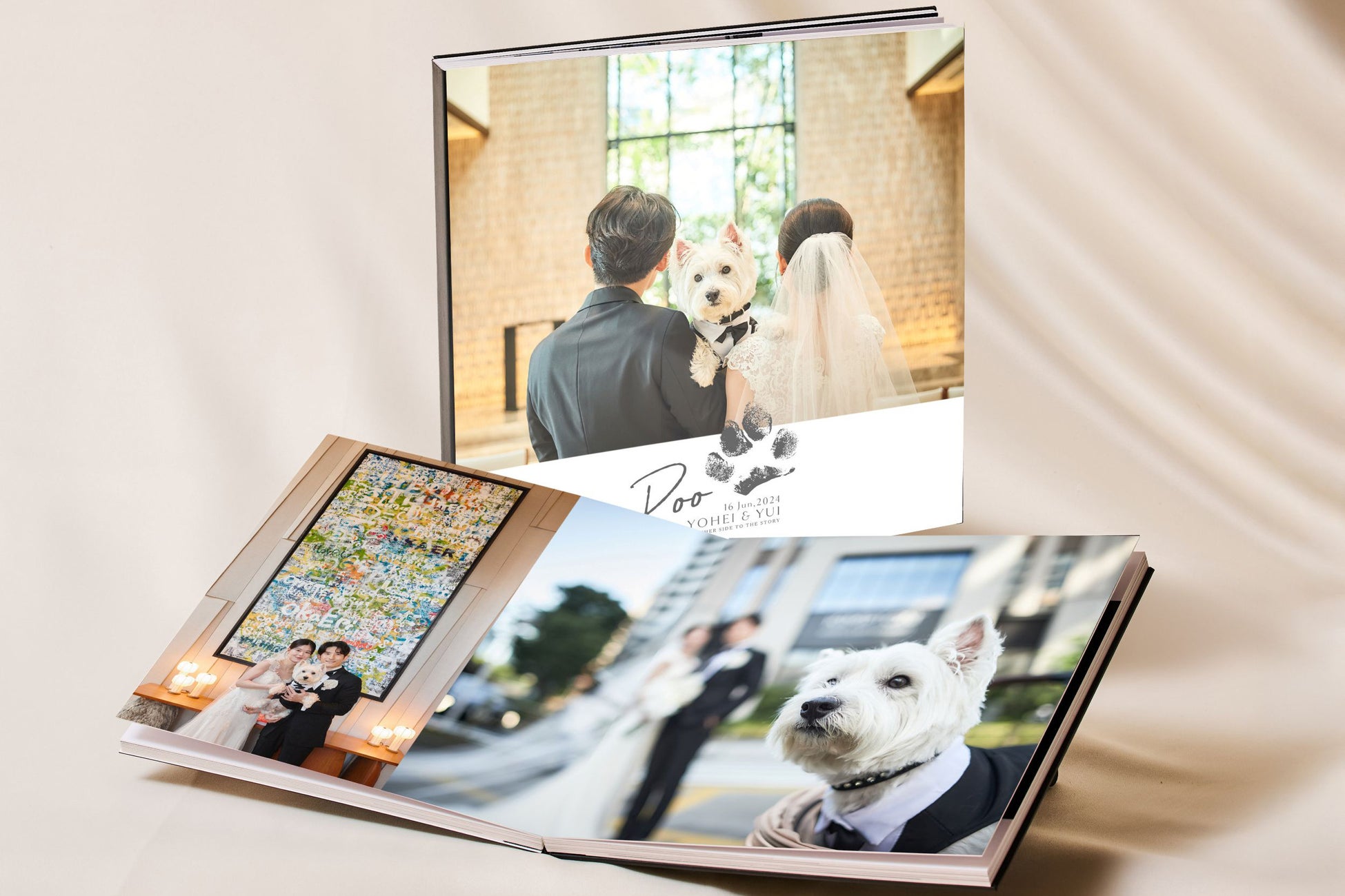 キンプトンの世界観とペットとの触れ合いを熟知した専属フォトグラファーが、当日の何気ない表情を密着撮影。ふたりとペットの絆をアートとして綴る、世界に一冊だけの宝物となります。