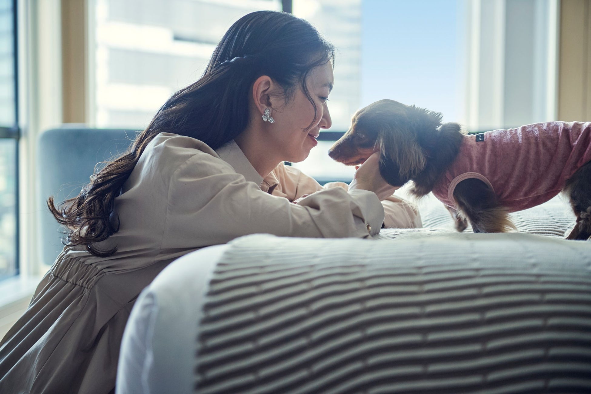 キンプトン新宿東京は、ご宿泊の客室はもちろん、洗練されたレストランでのひとときに至るまで、大切な家族であるペットと片時も離れずにお過ごしいただけるラグジュアリーライフスタイルホテルです。 この5年間、私たちは「YOUR DAY, YOUR WAY」のコンセプトのもと、一組一組の想いに寄り添い、数えきれないほどのペットとご家族の幸せな瞬間を紡いでまいりました。ただ「同伴できる」だけでなく、犬種・サイズ・種類を問わず(猫などの小動物も含む)、一組一組に寄り添う「とんでもなくパーソナルなおもてなし」の確かな実績が、厚い信頼へと繋がっています。