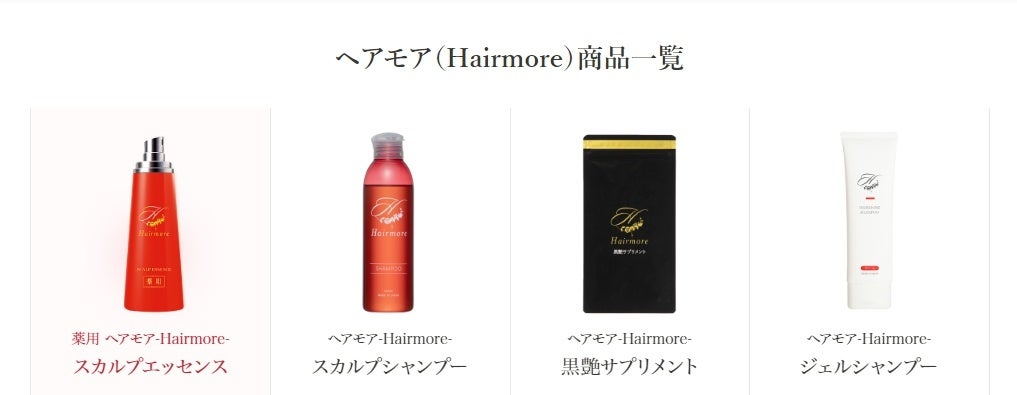 ヘアモアシリーズは、育毛剤、スカルプシャンプー、ジェルシャンプー、サプリメントがございますので、ぜひチェックしてみてください!