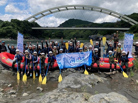 2日目には駿河湾に流れ込む富士川でラフティングにチャレンジしました。前日の雨で川が増水していたこともあり、山に降った雨が、川を流れて、海に注ぐ過程をより実感することが出来ました。陸地で発生したごみも最終的には海に流れつくので、普段の生活から気を付ける必要があると発表した子もいました。