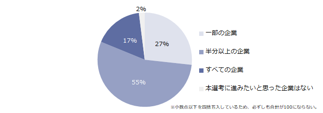 【図4】サマーインターンに参加した中で、本選考に進みたいと思った企業はどのぐらいありましたか。