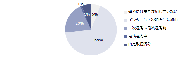 9月時点の選考ステータス、約7割が「インターン・説明会に参加中」。本選考のエントリー予定社数「11社以上」が最多。