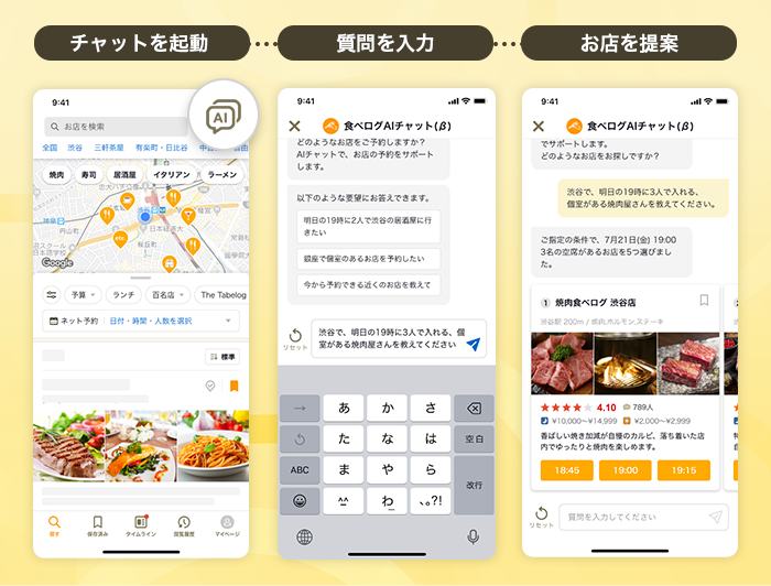 「食べログAIチャット(β)」利用イメージ