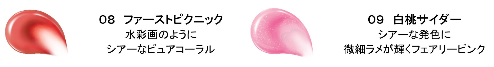 やさしくピュアなコーラルカラーと、微細ラメが輝くピンクの2色。