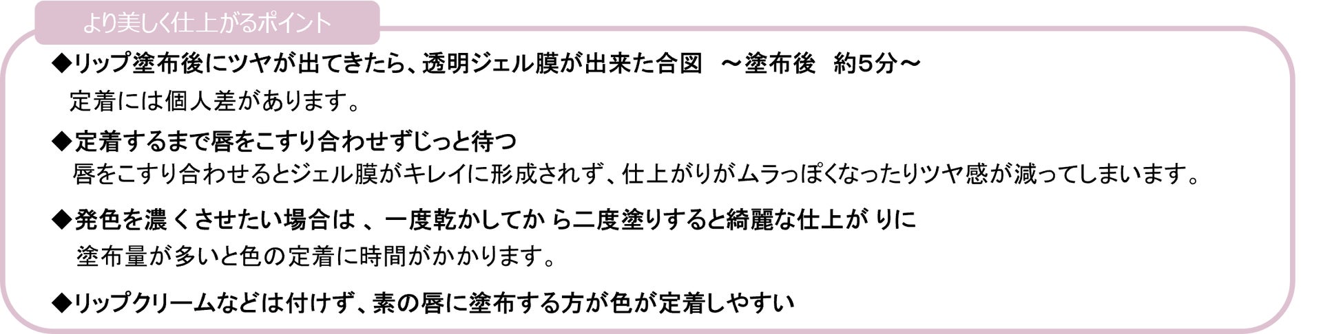 ◇塗って約5分後に、カラー層の上にツヤのあるジェル膜ができる処方を採用。