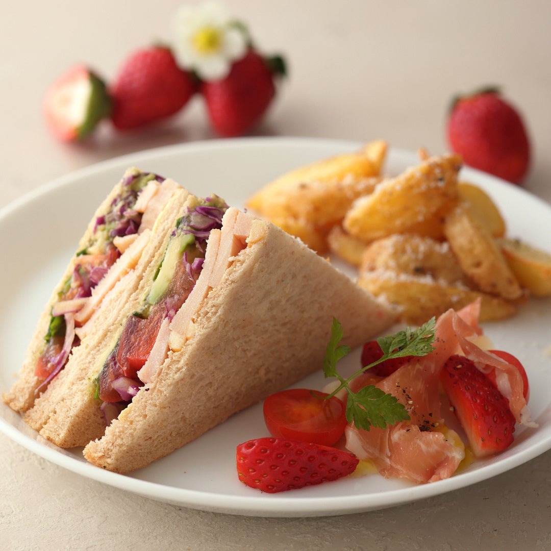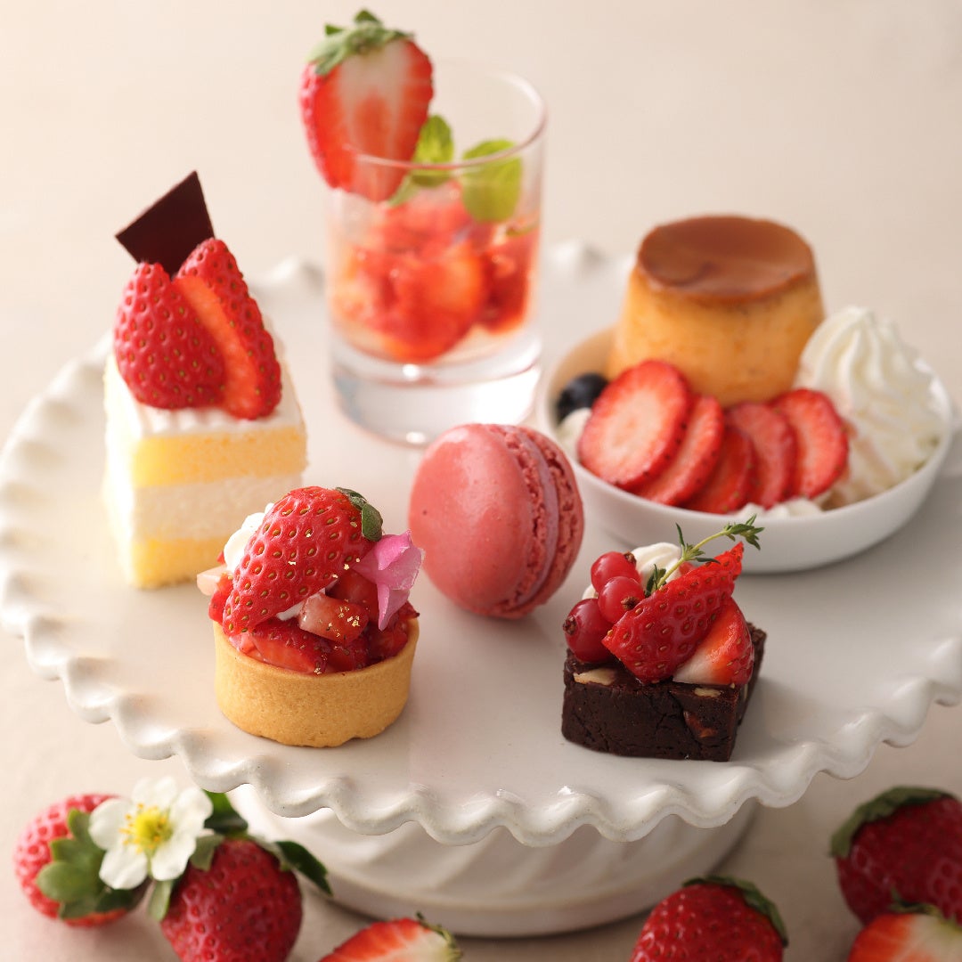 「KIHACHIのアフタヌーンティー ~まりひめスペシャル~」では、サクサクのタルトの上に2種類のクリームとジューシーな “まりひめ” をのせた新作「苺のタルト」や、ふんわりとしたスポンジとなめらかなクレーム・シャンティでシンプルな味わいに仕上げた「苺のショートケーキ」、生ハムのほどよい塩味が “まりひめ” の甘さを引き立てる「苺のカプレーゼ」など、全13種の多彩なスイーツとセイボリーをご用意しました。
