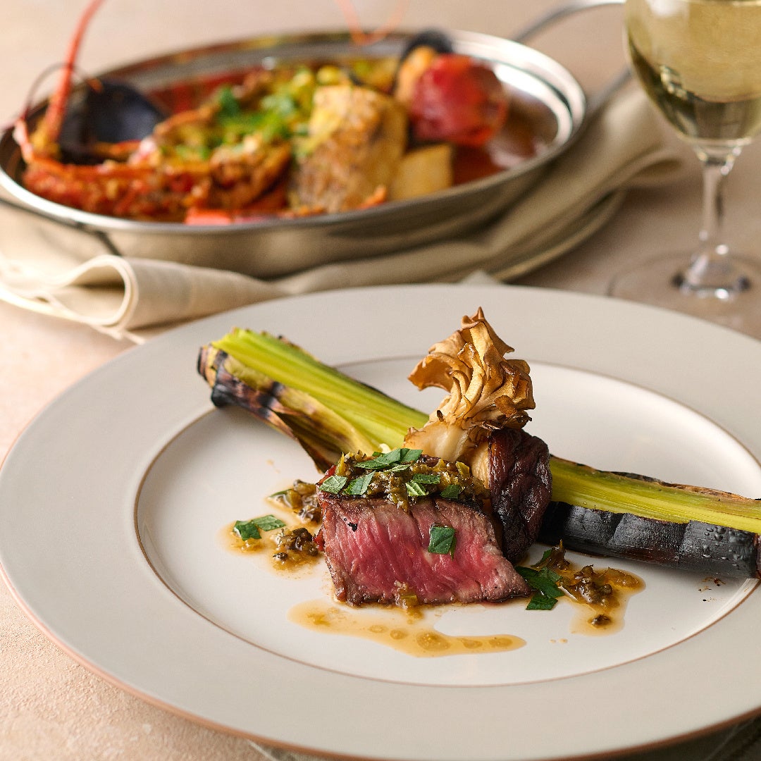 青山本店では、柔らかな食感と肉本来の風味を感じる和歌山県産ブランド牛 “熊野牛” を味わう「熊野牛フィレ肉の網焼き 紫蘇の実アンチョビソース」、世界各国のスパイスや調味料を使った特製スープと和歌山県の海の幸をあわせた「和歌山県産 伊勢海老と魚介のKIHACHI定番スパイシーブイヤベース」など、コース料理全てに紀伊半島の食材を使った「KIHACHIのスペシャリテコース ~紀伊半島の恵み~」を実施します。