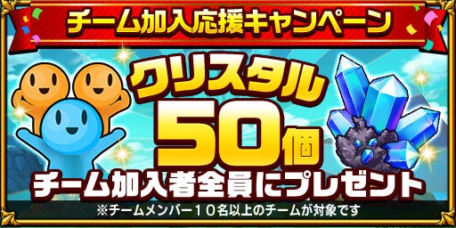 開催期間終了日に、チームに加入していたユーザー様全員にクリスタルを50個プレゼントいたします。