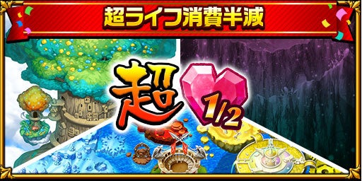 期間中、大陸・試練・グランバトル・天上界・深層で消費するライフが半減されます。