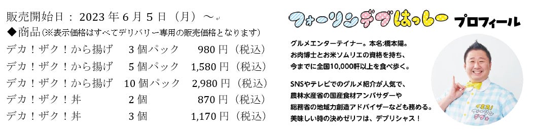 フォーリンデブはっしー監修デリバリー専門の新業態「から揚げの革命」6月5日(月)NEW OPEN!!