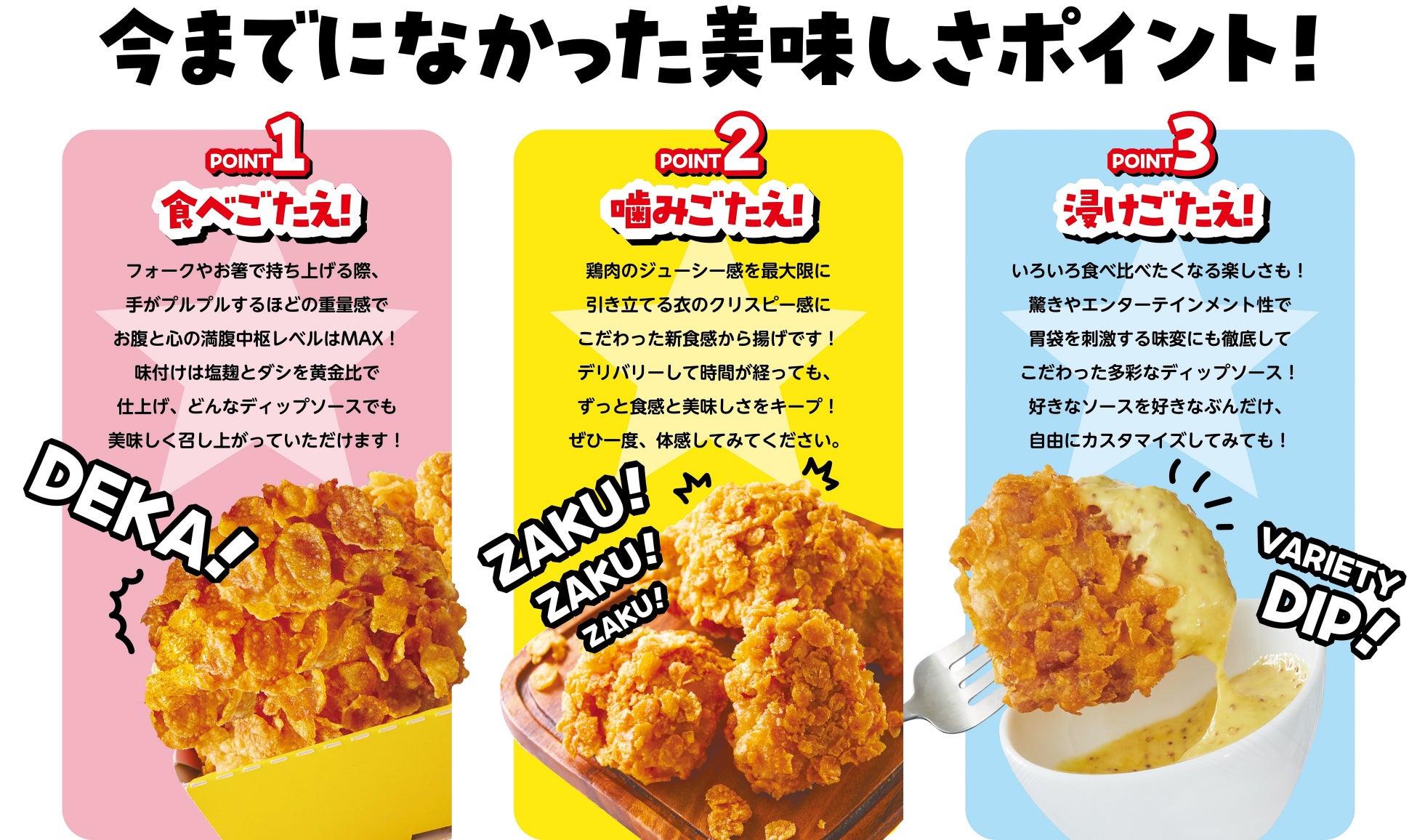 この度は、新感覚のからあげ専門店「から揚げの革命」をデリバリー専門のお店としてオープンします。そして何と!監修には、SNSやテレビで大人気のグルメエンターテイナー・フォーリンデブはっしーをお迎えして、今までになかったデッカくて、ザックザクで、楽しい!から揚げが完成しました!これまでにも焼肉店や、から揚げ店でコラボレーションを行ってきましたが、今回はブランドの立ち上げから、商品の開発まで、全面的にサポート、アドバイスいただき、から揚げ界に革命を起こすお店ができました!ボリューミーでジューシーでクリスピーな美味しさが三拍子揃ったから揚げをバラエティ感のある多彩なディップソースでお楽しみください。エンターテインメント性抜群なので、ぜひ一度、ご体感ください。ご注文は、フードデリバリーの「UberEats」「menu」より承っています。(※配達エリアは、公式サイトより検索ください)