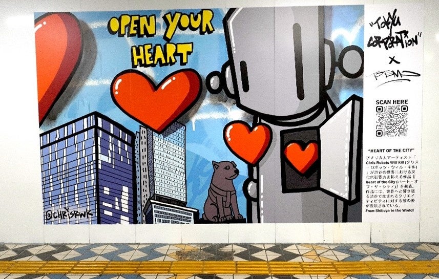 今回公開するアートは、アメリカ・ニューヨークを拠点に活躍するアーティストChris RWKによる、渋谷を題材とした作品です。渋谷の先進的なイメージとChris RWKのアイコニックなロボットのキャラクターのイメージがマッチしたことから、今回のコラボレーションが決定しました。