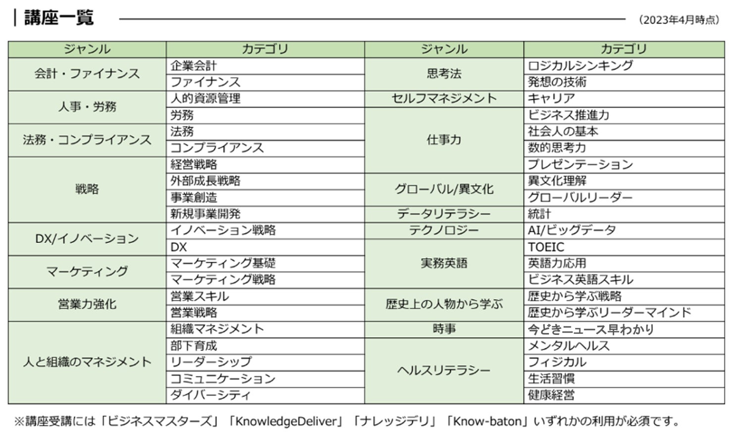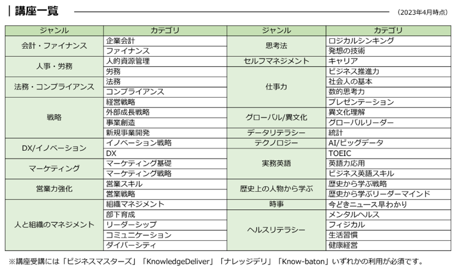 ※弊社製品サービス「KnowledgeDeliver」「ナレッジデリ」もしくは「Know-baton」を企業内、組織内研修でご利用されるお客様が対象です。