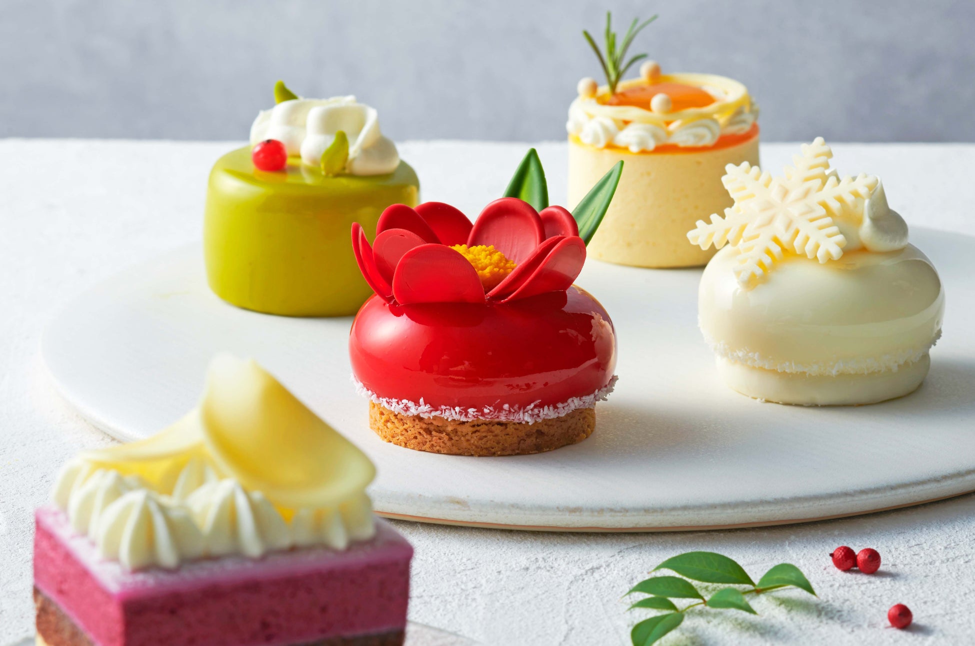 冬に真っ赤な花を咲かせる寒椿をイメージして仕上げた、フランボワーズとホワイトチョコレートのムース「寒椿(かんつばき)」や、レアチーズムースで甘酸っぱい苺の果肉入りジュレを包んだ繊細な口どけの「淡雪(あわゆき)」など、華やかなケーキをご用意しております。冬の味わいをどうぞお楽しみください。