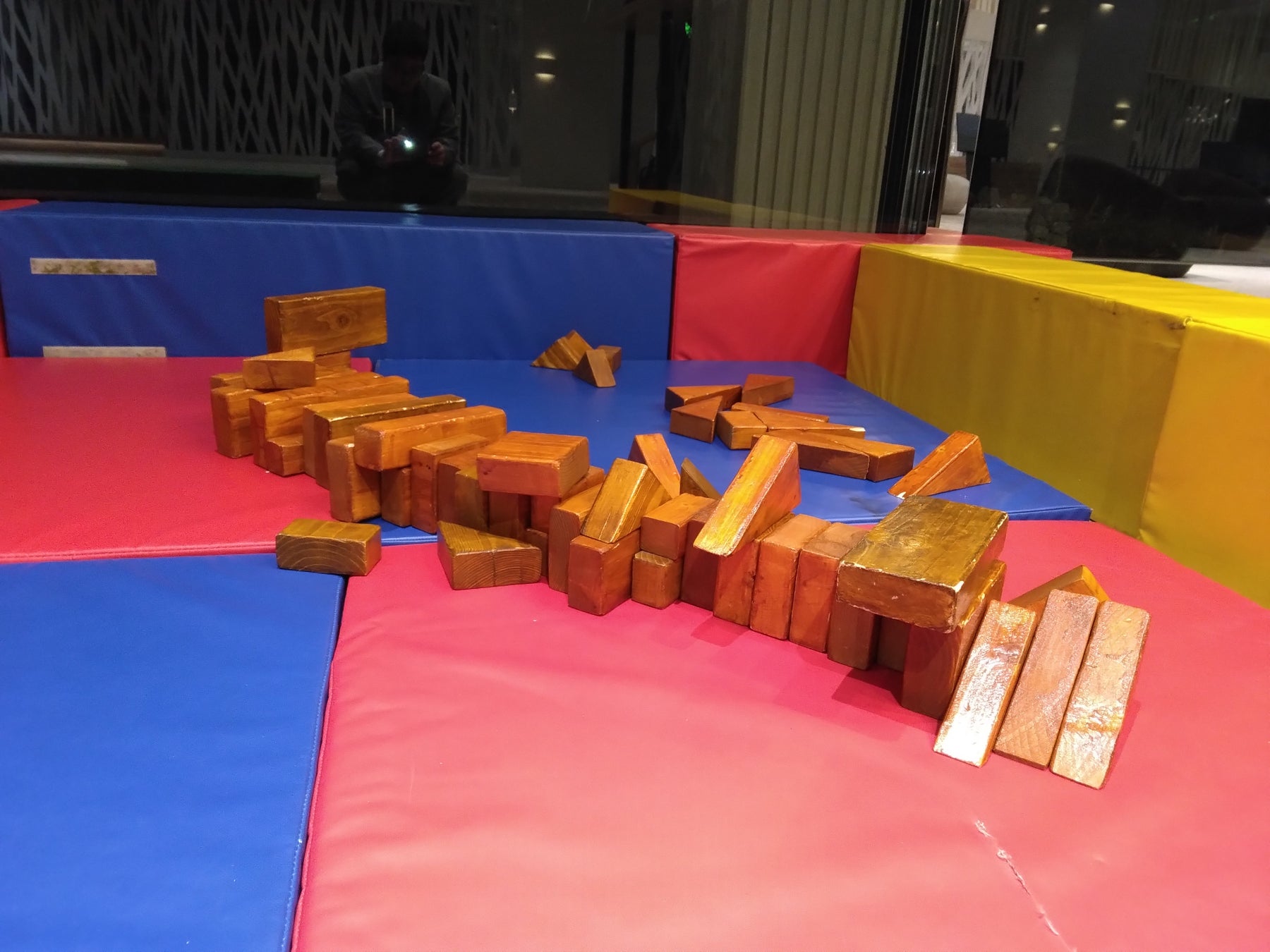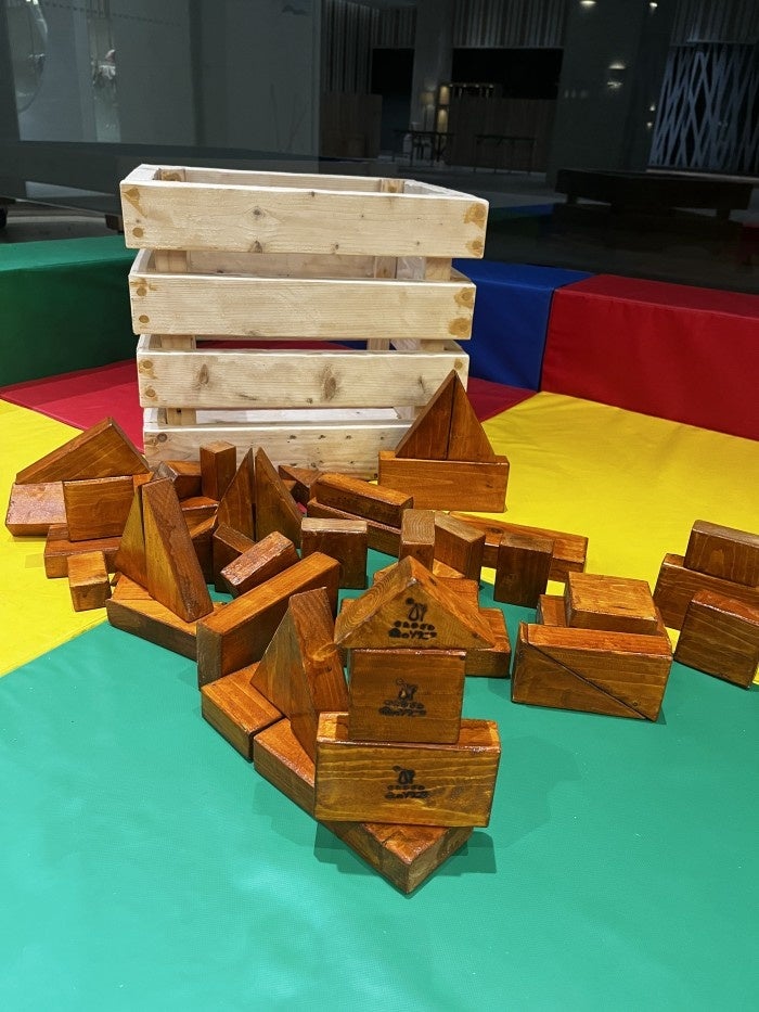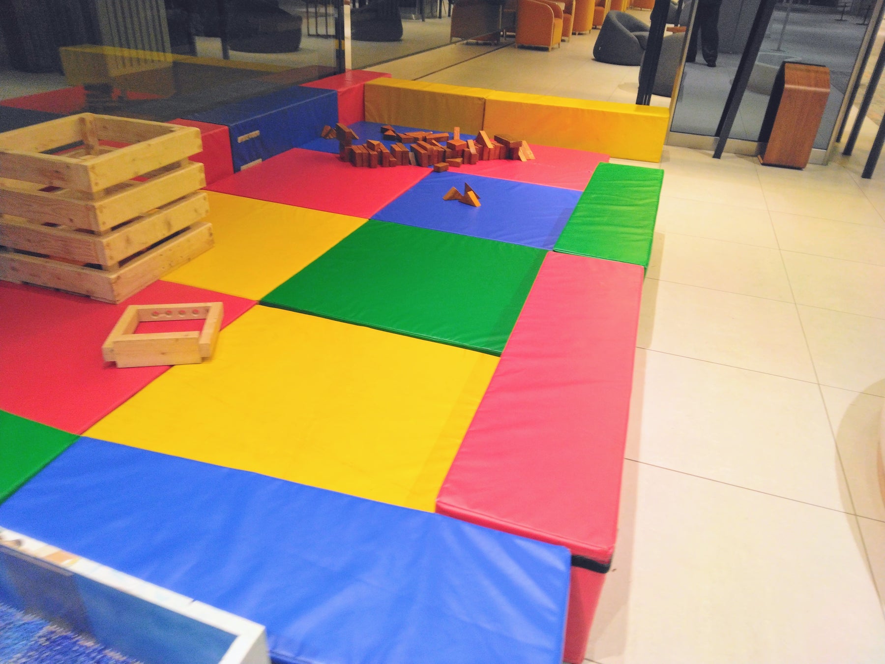北湯沢森のソラニワにロビーでのお寛ぎいただけるように積木広場を設置しました。