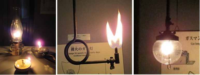 灯明、和ろうそく、石油ランプ、ガス灯(はだか火・マントル・花ガス)の順に、日本のあかりの歴史を紹介するプログラム。それぞれの灯器の明るさの比較をしながら、ガスが最初は灯りとして使われていたということを知っていただきます。普段は見ることができない「古灯器」もご覧いただける貴重な機会です。