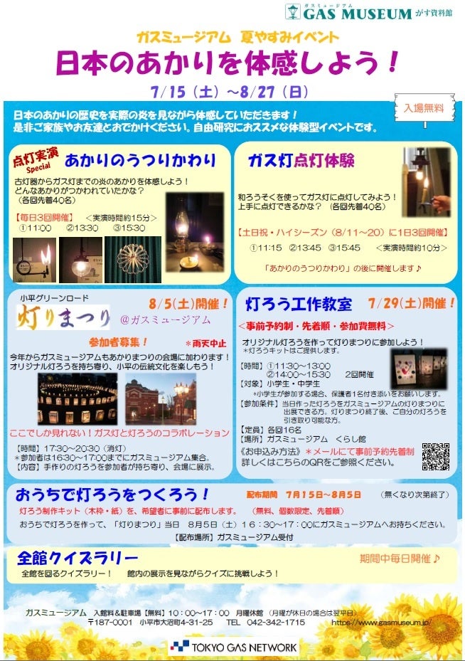 【ガスミュージアム】~夏やすみイベント~「日本のあかりを体感しよう!」開催のお知らせ