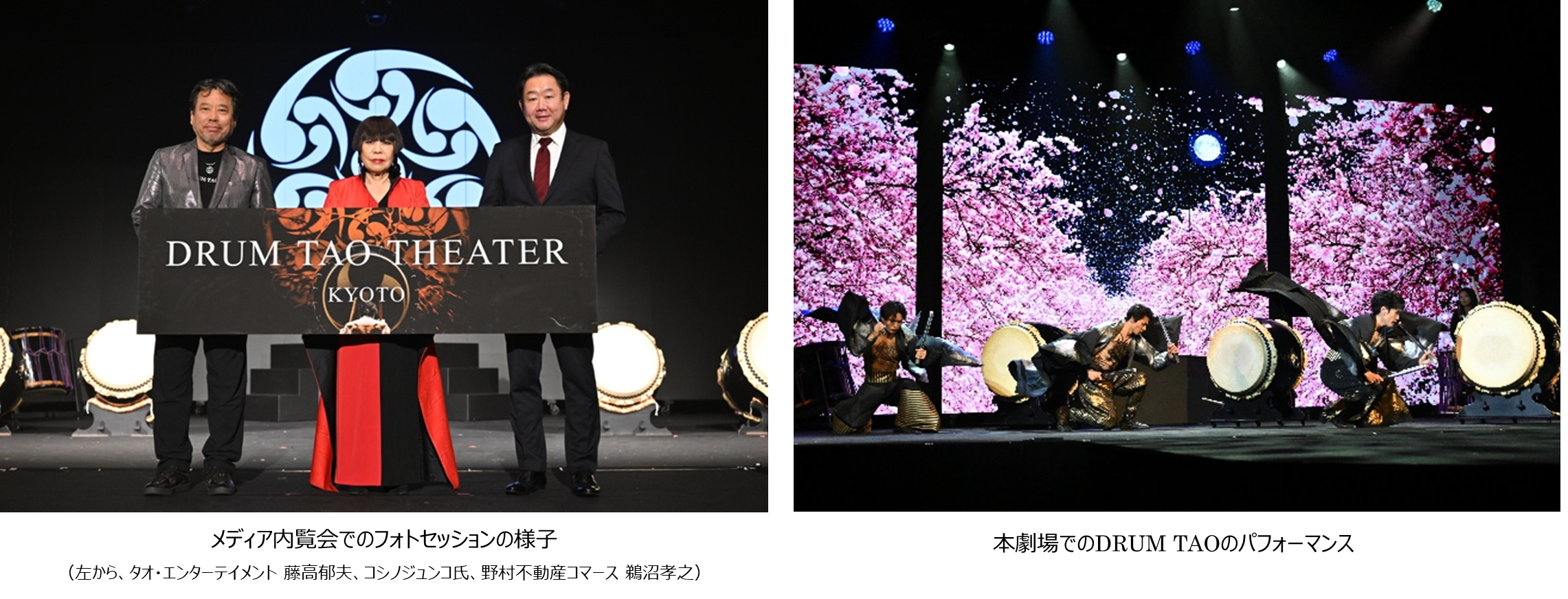 NRE&TAO エンターテイメントパートナーズ合同会社(野村不動産株式会社〔本社:東京都港区/代表取締役社長:松尾大作、以下「野村不動産」〕と株式会社タオ・エンターテイメント〔本社:福岡県福岡市/代表取締役社長:藤高郁夫、以下「タオ・エンターテイメント」〕がエンターテインメント事業に取り組むために設立)は、和太鼓パフォーマンス集団DRUMTAO(以下「DRUM TAO」)の専用劇場『DRUM TAO THEATER KYOTO』(以下「本劇場」)を、2026 年4 月9日(木)に開業いたします。本事業は、野村不動産から業務委託を受け、野村不動産コマース株式会社(本社:東京都港区/代表取締役社長:鵜沼孝之、以下「野村不動産コマース」)が推進しており、また、NRE&TAO エンターテイメントパートナーズ合同会社は、包括的業務提携を結んでいる株式会社JTBコミュニケーションデザイン(本社:東京都港区/代表取締役:藤原卓行)と連携しながら、本劇場の開業および運営に取り組んでまいります。