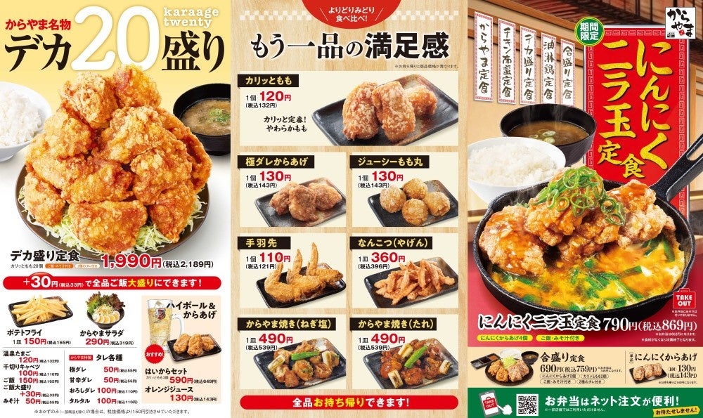 【春こそスタミナ】ガツンとパワフル「にんにくニラ玉定食」からあげ専門店からやまに新登場!