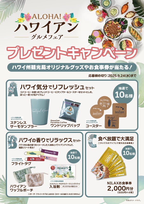 ハワイ州観光局協賛:Aloha気分満載のグッズや、ニラックスブッフェでご利用いただけるお食事券が当たる?!プレゼントキャンペーンも同時開催!