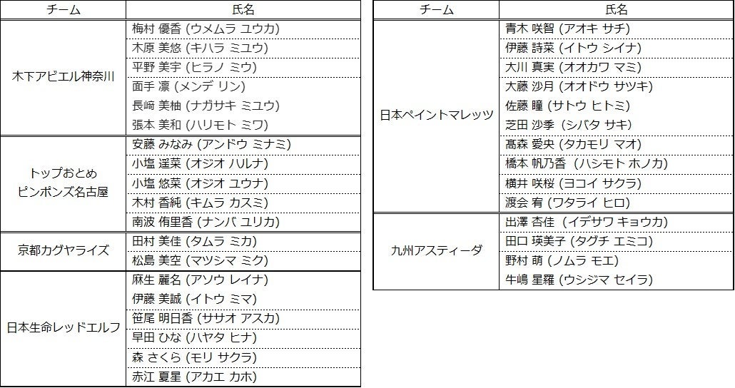 Tリーグでは、2023-2024シーズン 登録解除選手を以下の通りお知らせいたします。