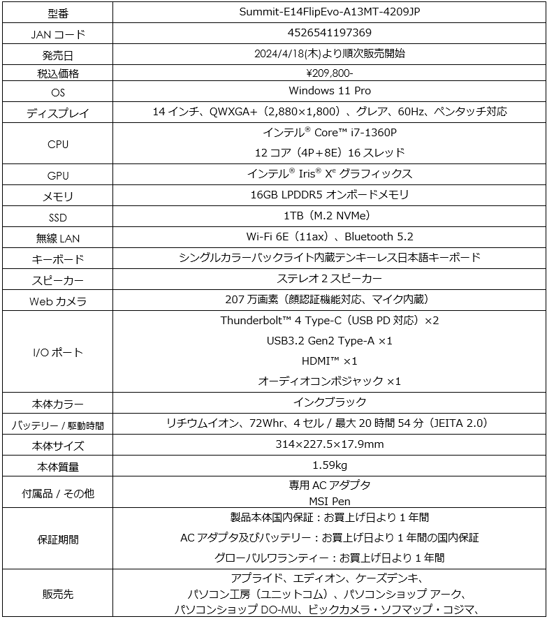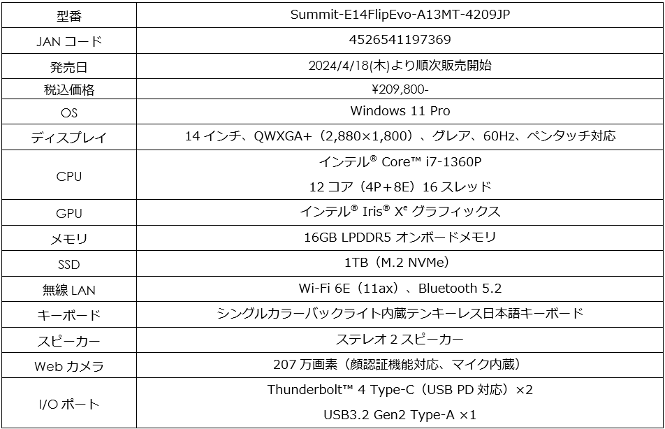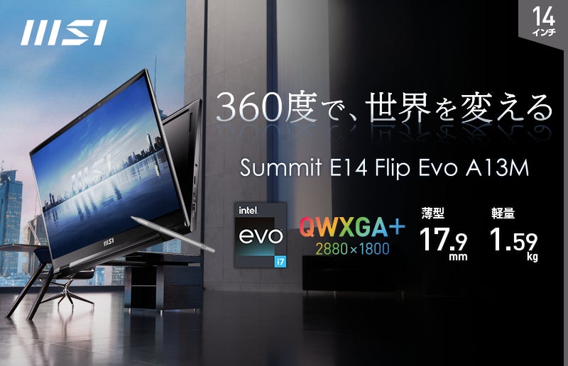 360度回転可能な高解像度フリップディスプレイ搭載14インチハイスペックビジネスノートPC『Summit E14 Flip Evo A13M』シリーズ店頭販売モデル発売